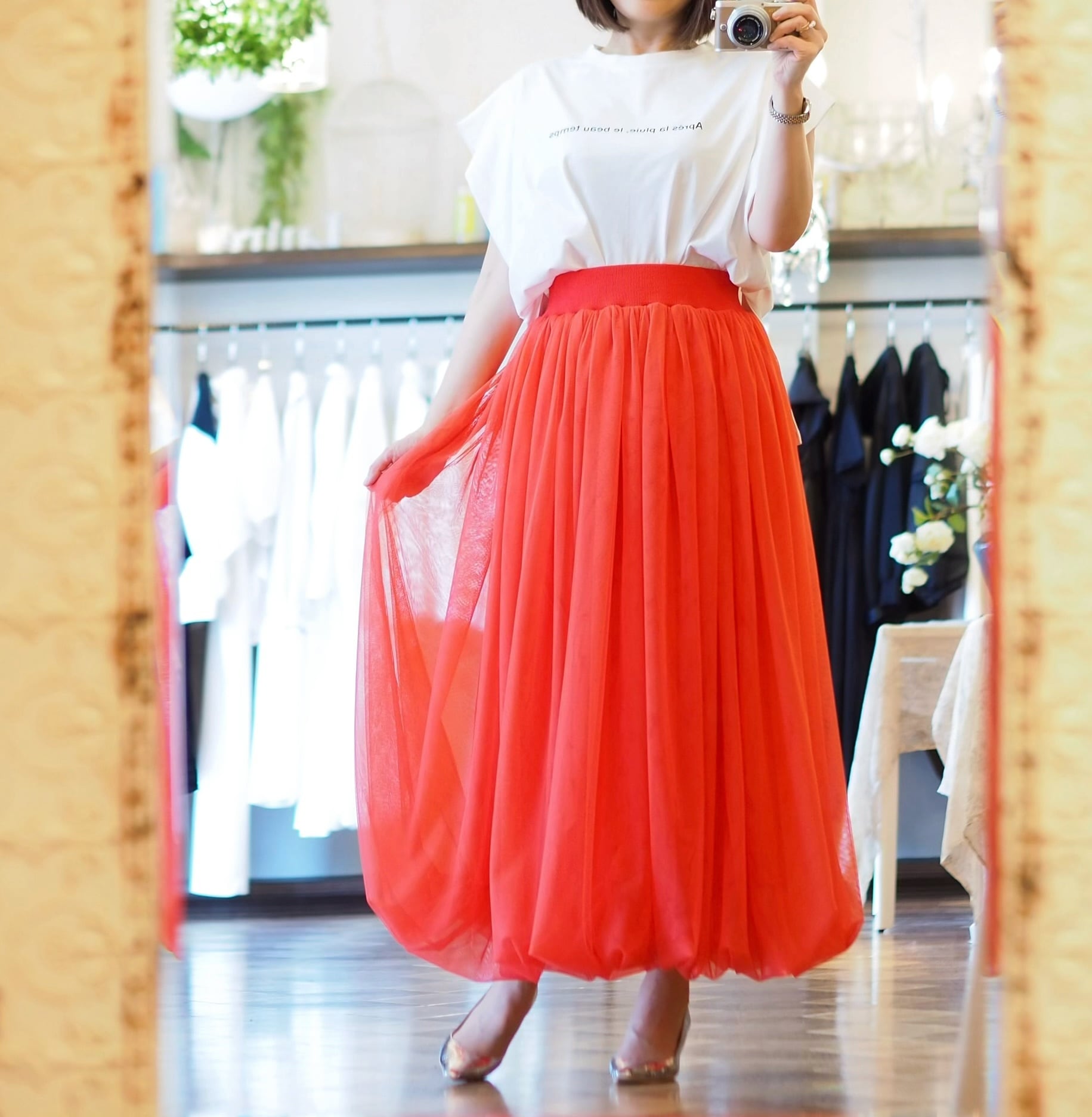 ✔ 裾には、ルイールらしい“赤い小さなハート刺繍”のアクセント