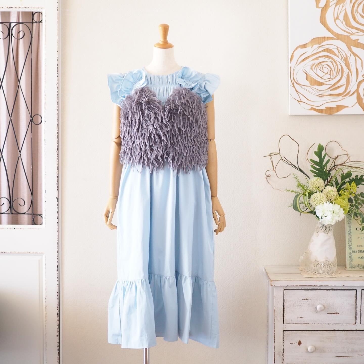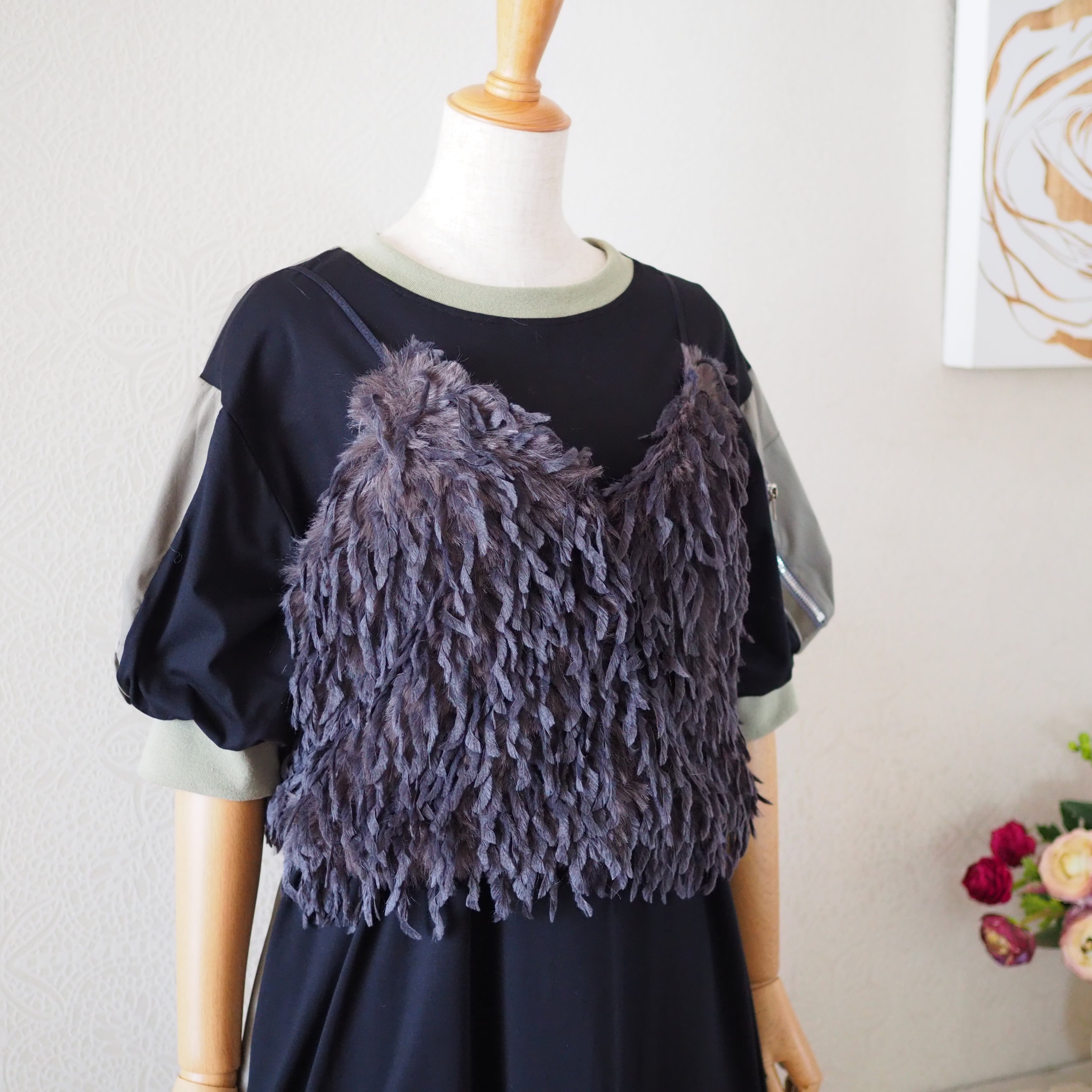 軽やかなフェザーの質感が目を惹く、今シーズン注目のビスチェ。