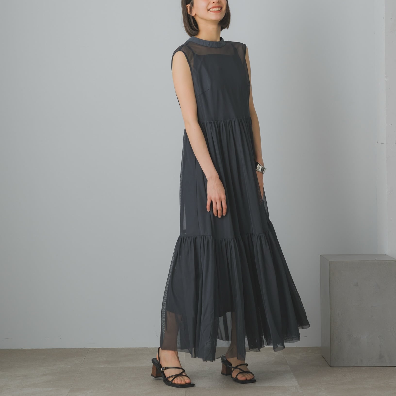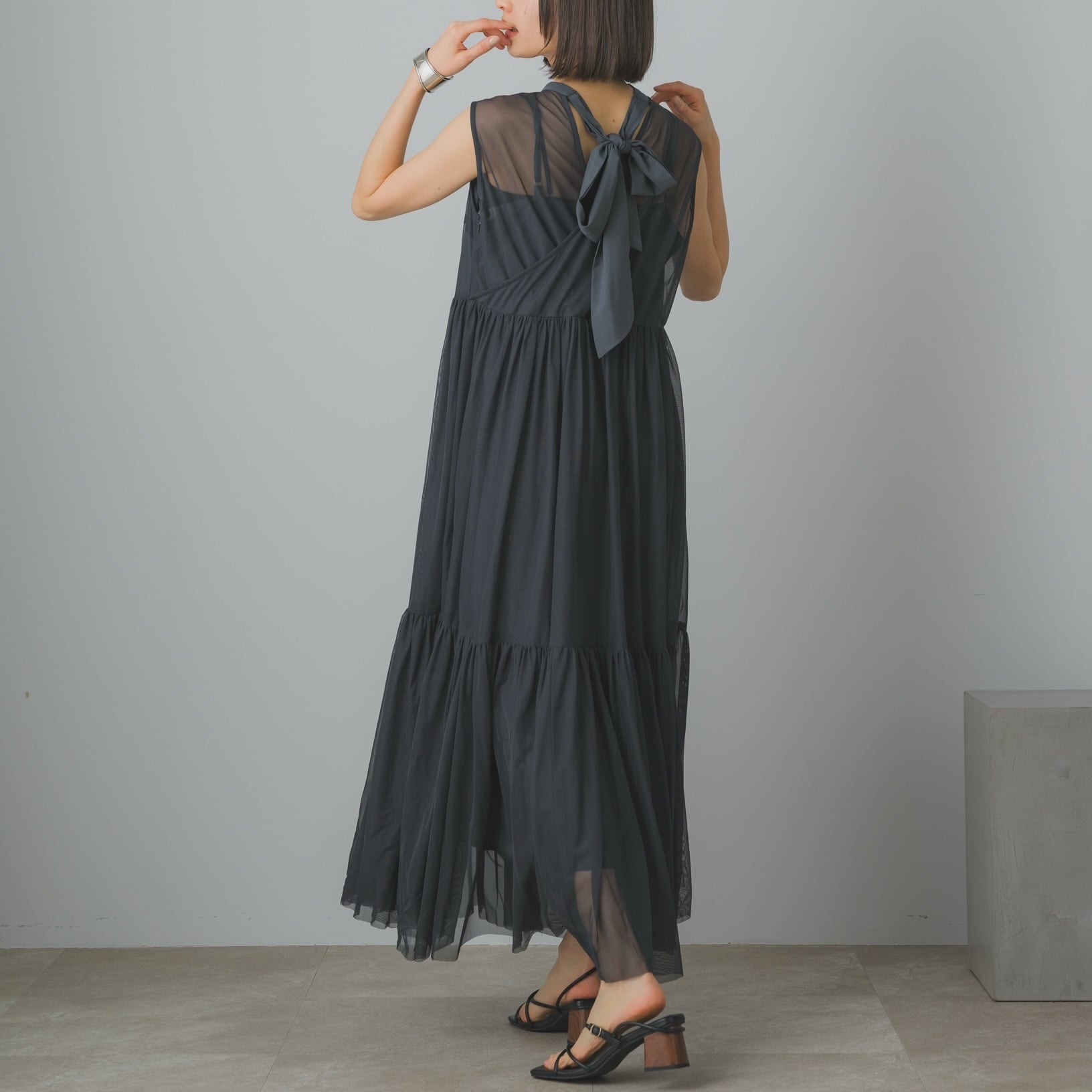 ドレス本体とインナーはセパレート仕様。透け感を活かしたレイヤードや、お手持ちのトップスとのコーディネートも楽しめます。