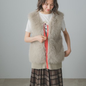 柔らかなフェイクファーが生み出す華やかさと、背中をニットに切り替えたことで叶う軽さとシルエットの美しさ。